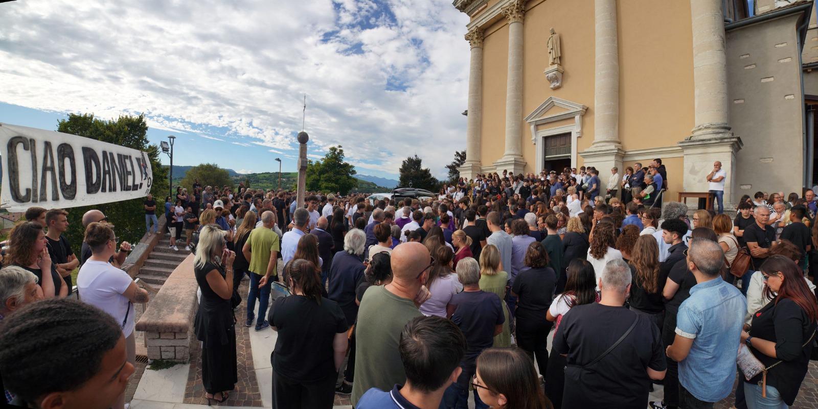 “Ciao Daniel” era anche la scritta riportata su un grande striscione esposto sul sagrato.