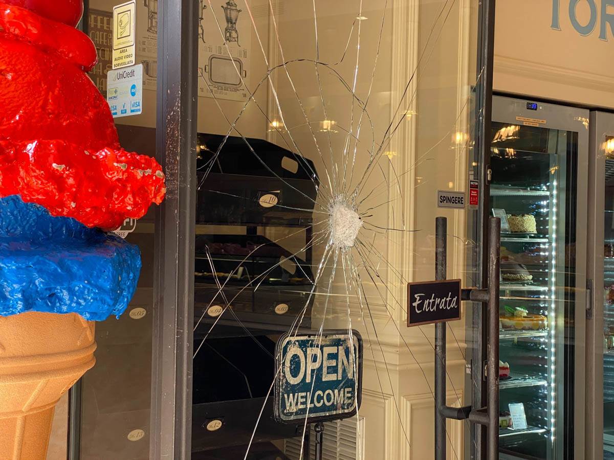 L’allarme è scattato all’1, ma dalle telecamere di sorveglianza non risultano intrusioni. I malviventi hanno frantumato la vetrata della porta d’ingresso: è la quarta volta in due anni che il Caffè Wallner finisce nel mirino dei malviventi.