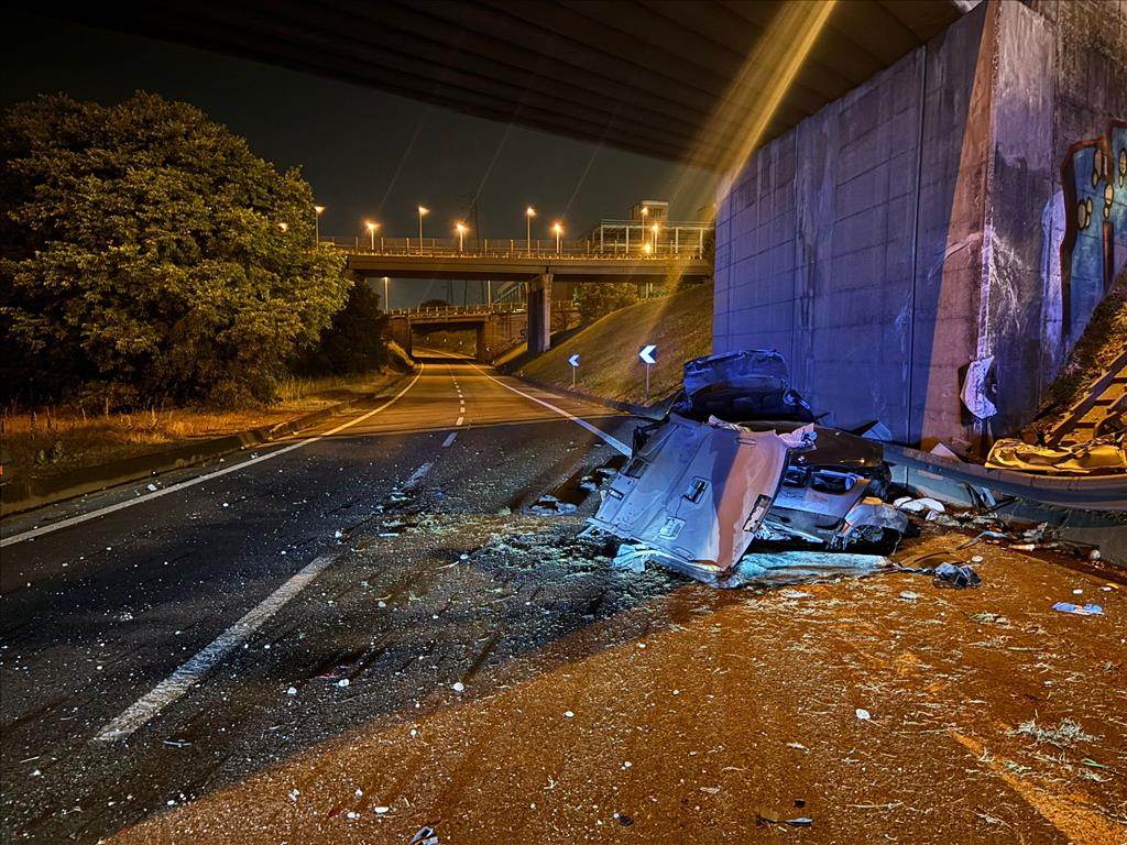 Schianto in tangenziale Sud, auto contro il cemento del sovrappasso. Un ferito