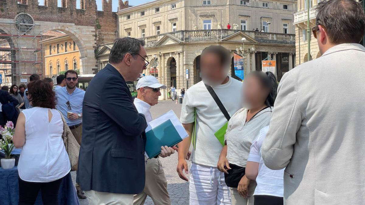 Hanno scelto la vittima sbagliata. Tre finti volontari hanno avvicinato in piazza Bra Luigi Altamura, in borghese, ma pur sempre comandante della Polizia Locale.