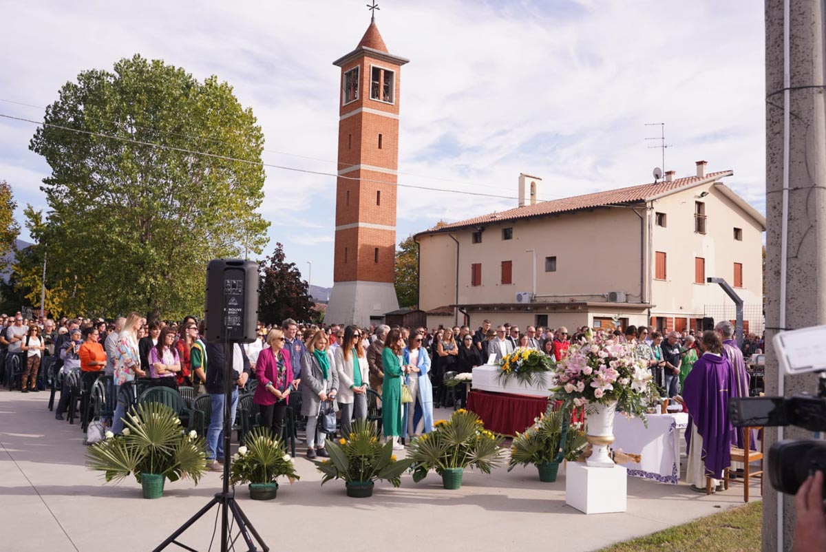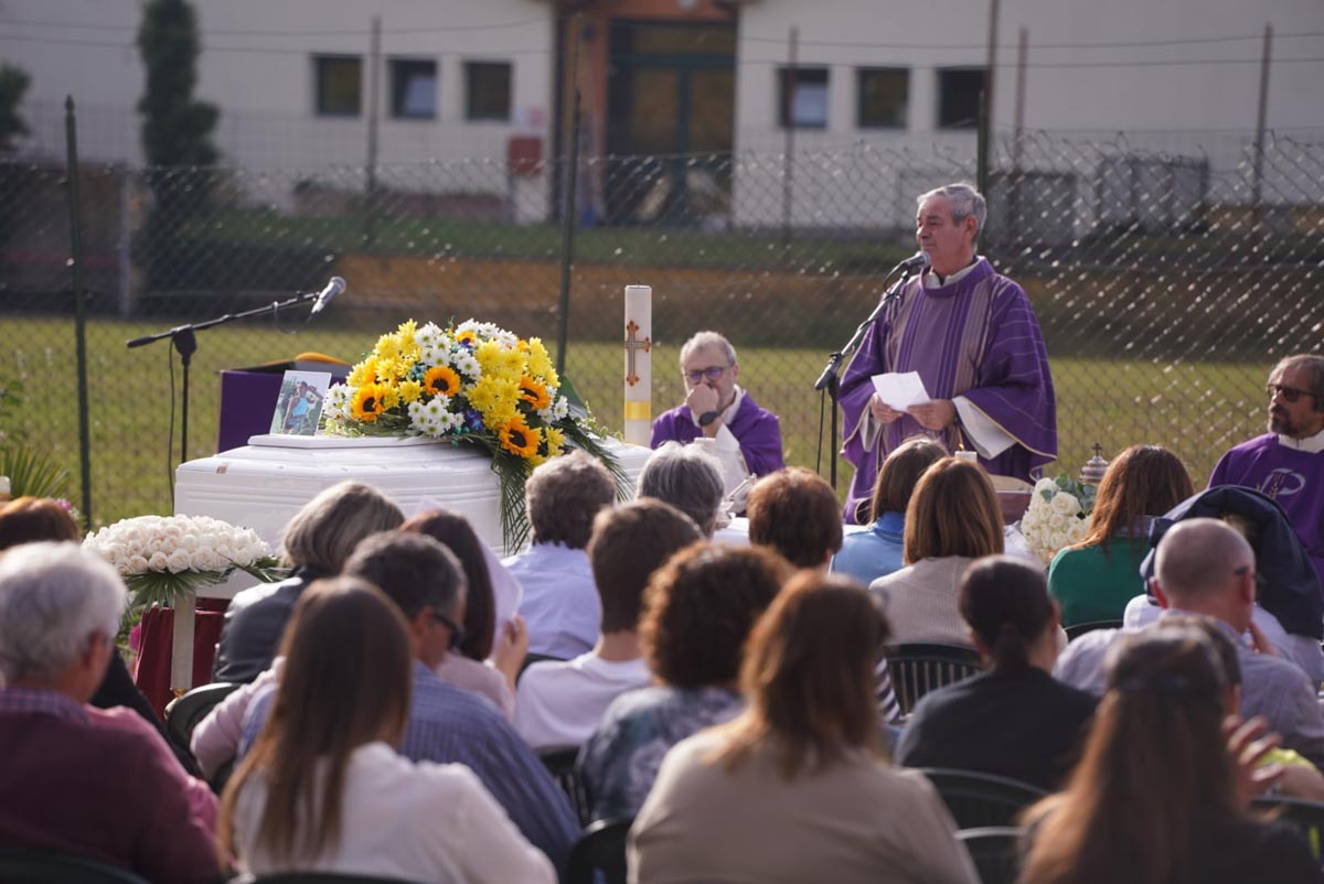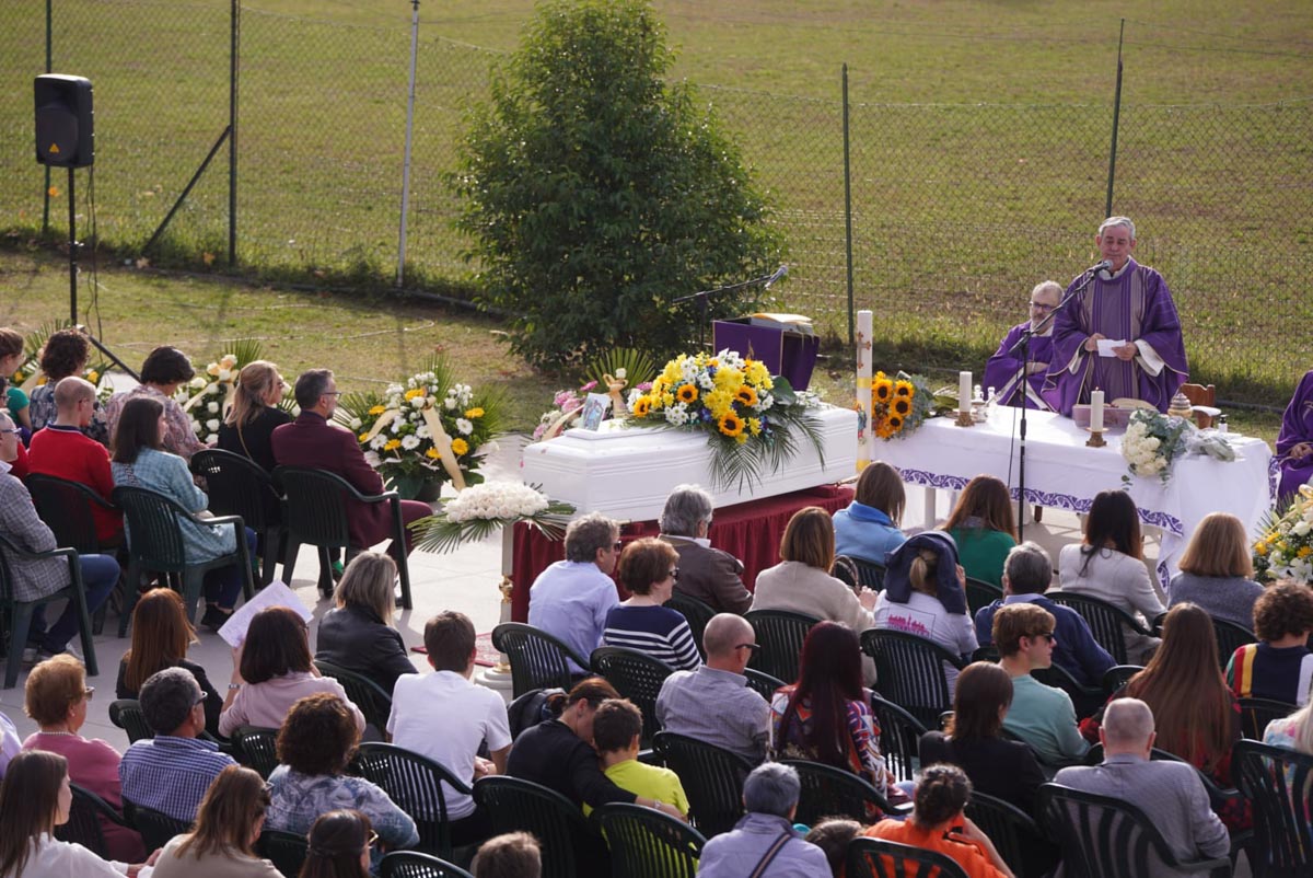 Vista la numerosa presenza di persone, il parroco ha scelto di celebrare la messa all’esterno della chiesa per poter accogliere tutti coloro che hanno voluto portare un ultimo saluto a Sofia.