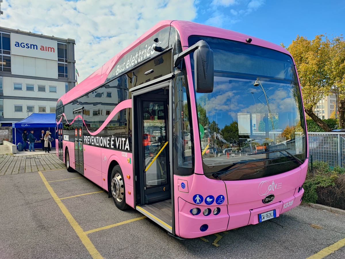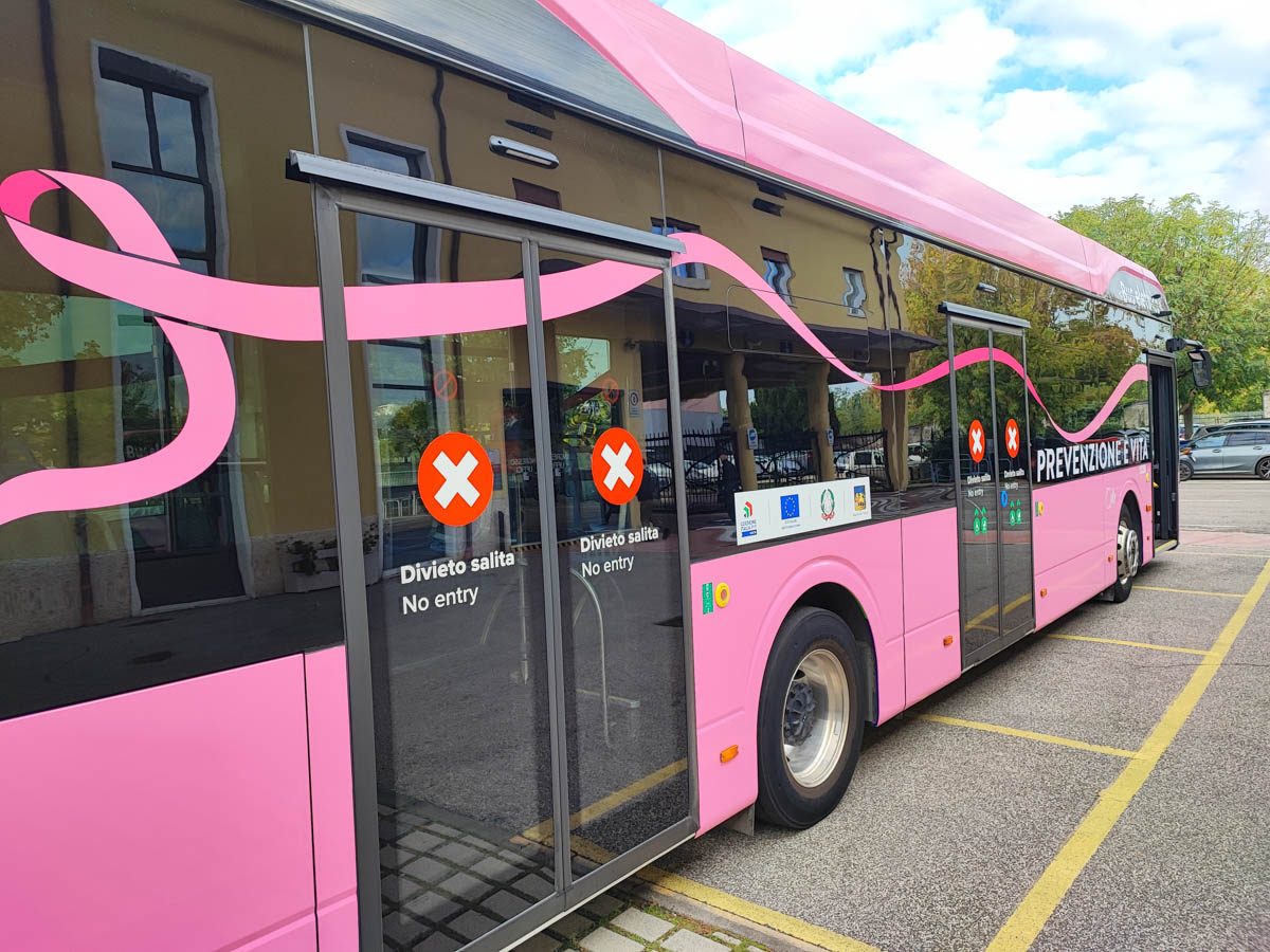 Un autobus elettrico interamente rosa circolerà per la città come simbolo dell’impegno di ATV nella Campagna Nastro Rosa, promossa per la prevenzione del tumore al seno.