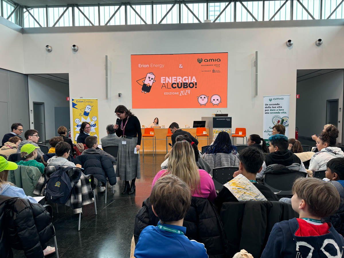 Alla cerimonia di premiazione, ospitata nella sede di Volkswagen Group Italia S.p.A, sono intervenuti Laura Castelli, Direttore Generale di Erion Energy, l’Assessora alle Politiche Educative e Scolastiche del Comune di Verona Elisa La Paglia e il Presidente di AMIA Verona Roberto Bechis.