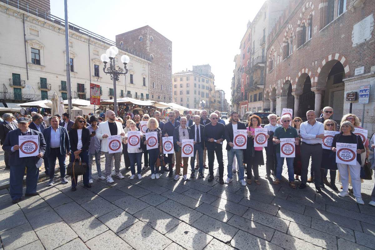 Esercenti e centrodestra in piazza contro la nuova ZTL di Verona