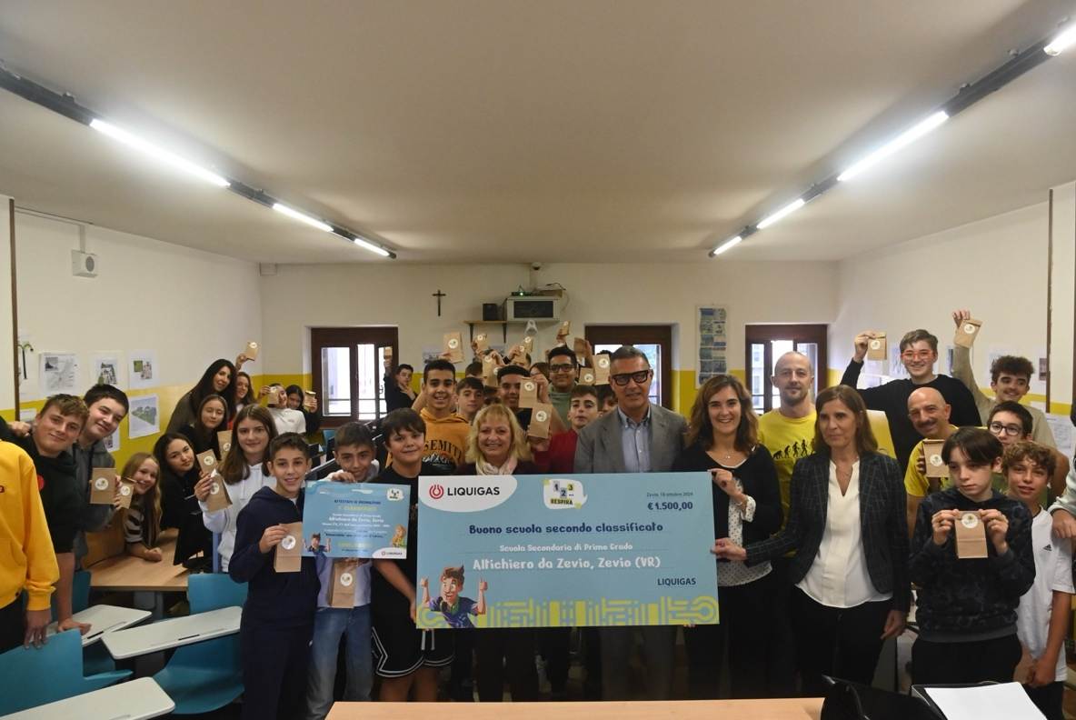 A un mese dall’inizio delle scuole, Liquigas, azienda leader in Italia nella distribuzione di GPL e GNL, ha premiato gli elaborati finali presentati al concorso collegato al progetto didattico “1,2,3…Respira!” che nell’anno scolastico 2023/24 si sono distinti per creatività e contenuti, aggiudicandosi dei buoni per l’acquisto di materiale didattico a favore delle scuole. Nello specifico, il primo premio è stato ottenuto dalle classi 3ªA-3ªB-3ªC(anno 2023-24) della scuola Secondaria di Primo Grado Bartolomeo Lorenzi di Fumane, mentre il secondo alla classe 2ªB-2ªF (attualmente 3ªB e 3ªF) della scuola Secondaria di Primo Grado Altichiero di Zevio.
