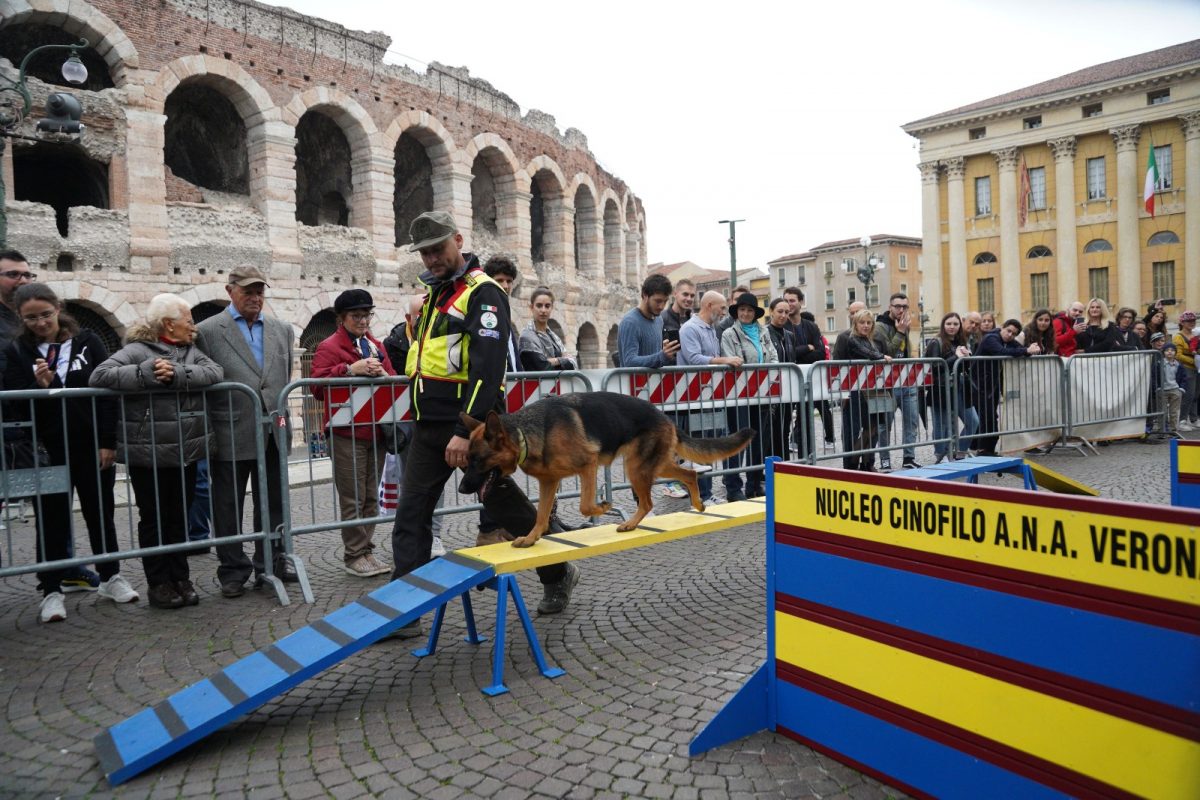 È stata inaugurata questa mattina la due giorni di celebrazioni per il 147esimo anniversario dalla Fondazione delle Truppe Alpine. Piazza Bra per l’occasione ospita una vera e propria cittadella alpina, che rimarrà viva e attiva per tutti i veronesi fino a domenica pomeriggio. Sono presenti il Nucleo di Protezione Civile Sezionale, insieme alle unità cinofile, impegnata in dimostrazioni, spiegazioni ed esercitazioni sul campo, il Museo e il Gruppo Storico con divise e materiale d’epoca, la mostra filatelica, il Gruppo Sportivo Sezionale e la palestra di roccia artificiale con l’assistenza del 4° Reggimento Alpini Paracadutisti Ranger.