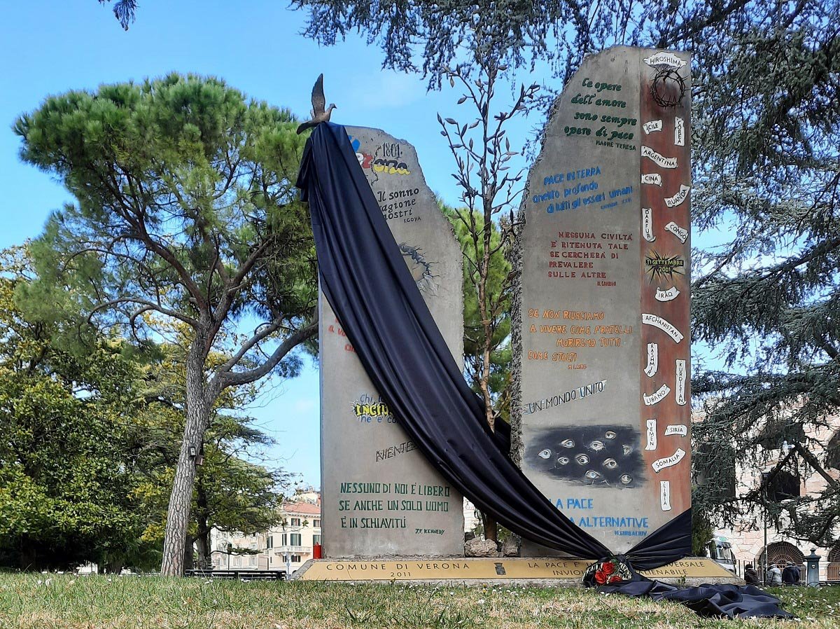 Newsgruppo AktiviapresenzeVerona in lutto per l'Ucrainaverona solidaleDrappo nero sul Monumento alla Pace di Piazza Bra: Verona in lutto per l’Ucrainadi Redazione| 14/03/2022
